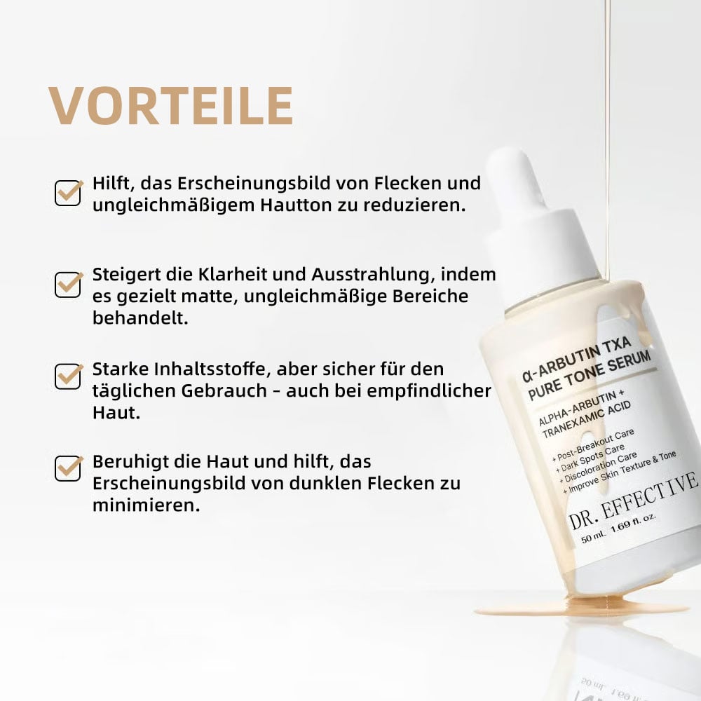 ✨Zweifache Wirkung für Klarheit und Ausstrahlung Dieses Serum nutzt die kombinierte Kraft von α-Arbutin und Tranexamsäure (TXA), um synergistisch auf Ihre Haut zu wirken und die Ursachen von ungleichmäßigem Hautton und dunklen Flecken zu bekämpfen. Es steigert effektiv die Hautklarheit, stellt ihre natürliche Ausstrahlung wieder her und sorgt für einen gleichmäßigeren, jugendlicheren und revitalisierten Teint.